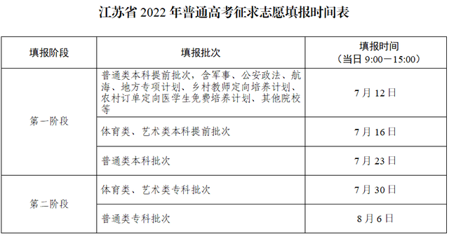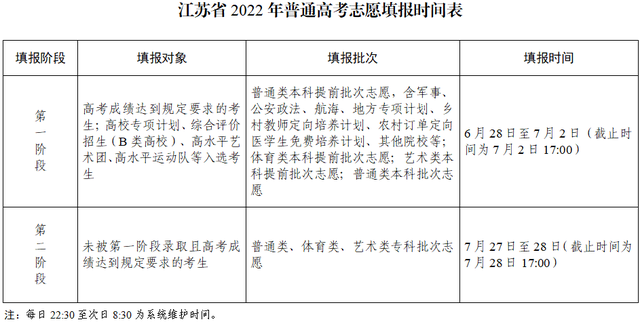 1.考生在獲知高考成績、學業(yè)水平考試成績、各批次錄取控制分數線、逐分段考生人數后,在省教育考試院網站(www.jseea.cn)或江蘇省2022年普通高考考生服務平臺(gk.jseea.cn,以下簡稱考生服務平臺),分兩個階段進行網上志愿填報。